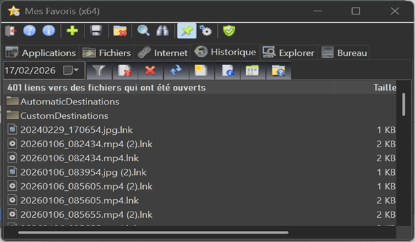 4. Historique : Liste les liens vers tous les fichiers qui ont été ouverts