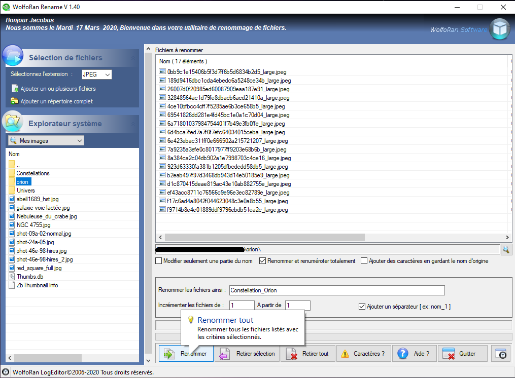 But you can also rename any kind of file, either by renaming them completely, or by modifying only part of the name, and this in a single operation for a large quantity of files.